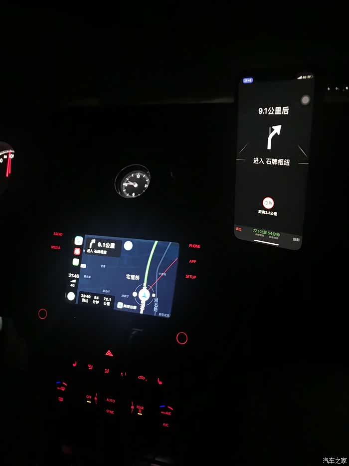 哈哈,现在苹果的CARPLAY也很方便呢,直接连接数据线,就可以投影到导航屏幕上使用啦,我刚看到的时候说咦,现在那么先进啦。