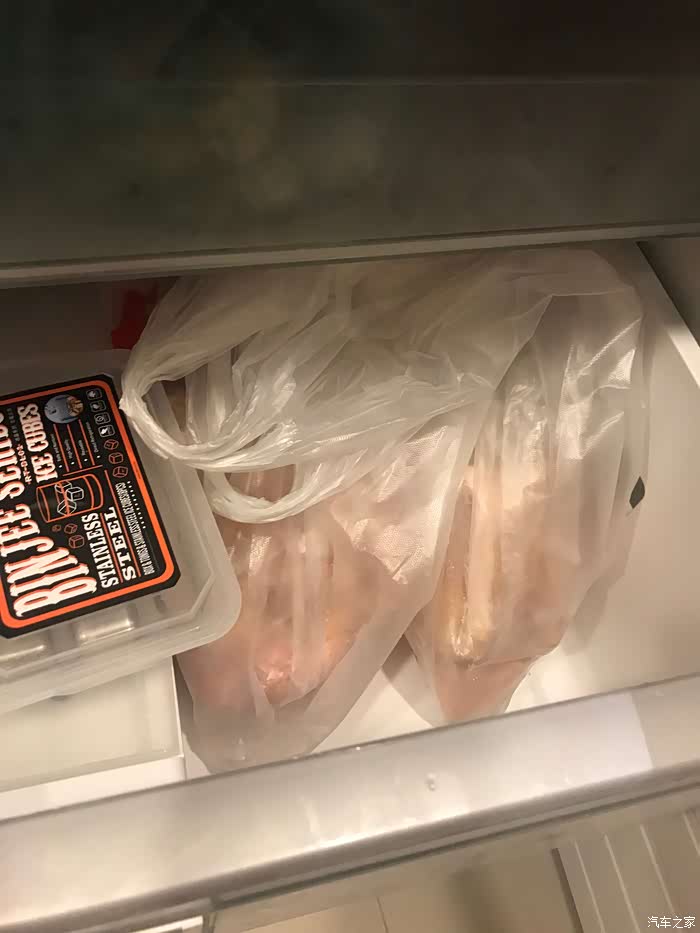 啦,后备箱一扔,回去就塞冰箱。哈哈,老板特别好,提前和他说好的要买鸡,提前帮我们冻在冰箱里了,处理的很干净,没有水滴下来。