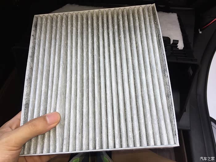 总体感觉风量比原来要小点,应该是含有活性碳的原因吧,凑近出风口一闻刚开始还有一点,后面就没有了,看来那个异味全是空气格上散发出来的,好了整体就是这样,大概算了下拆过一次后以后再换估计几分钟就可以搞定,根据行驶地区的空气环境建议一万公里或者一年一换即可