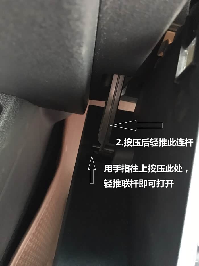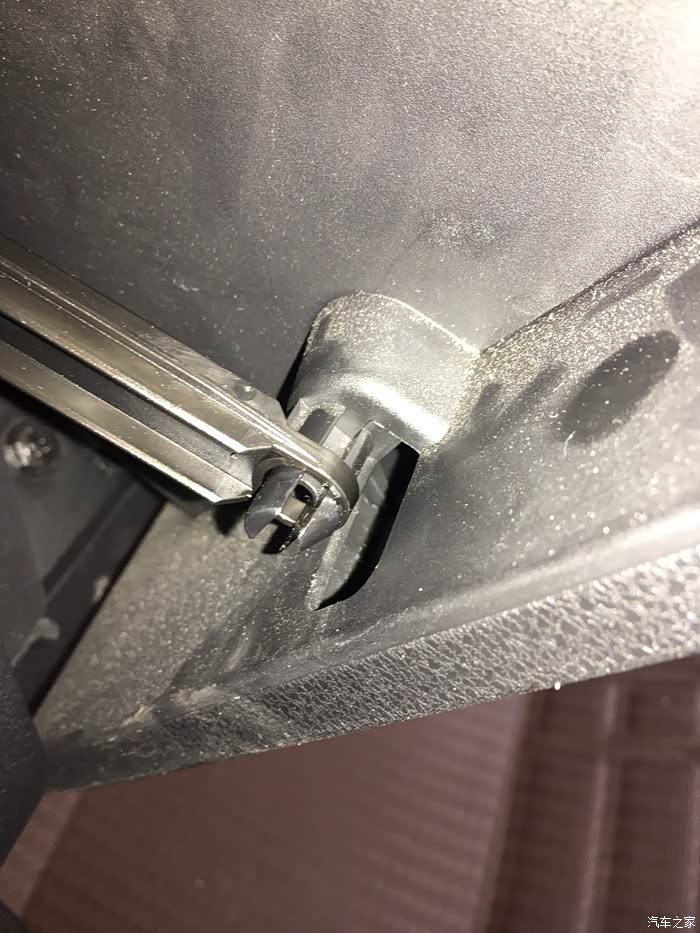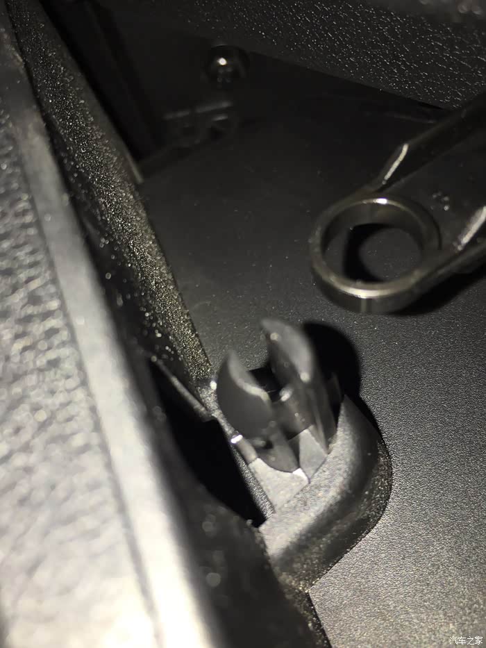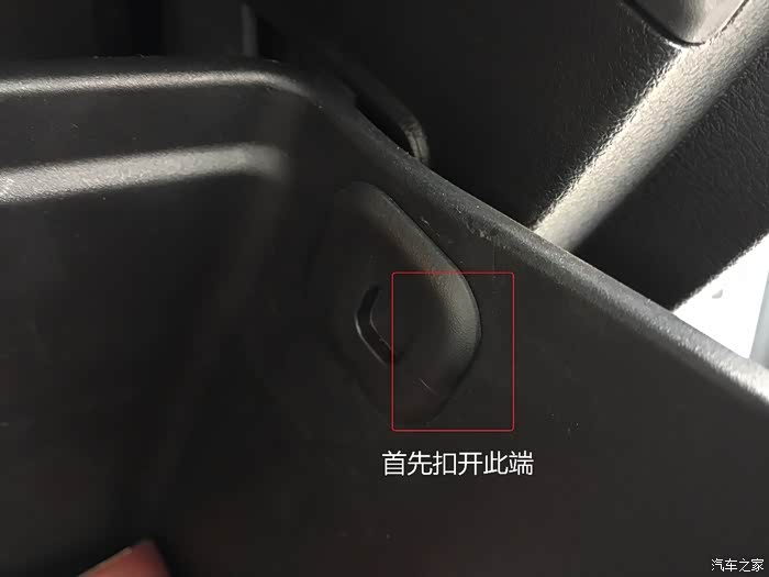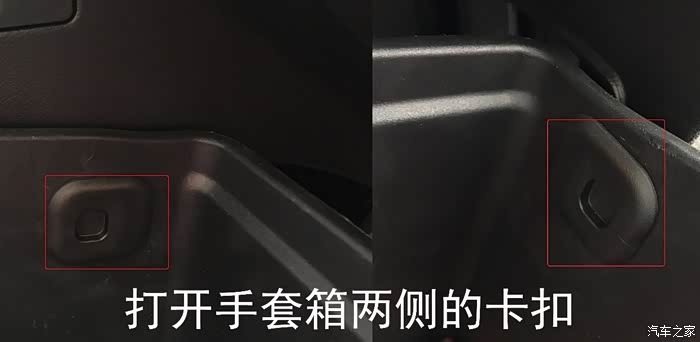 打开手套箱两侧的塑料卡扣