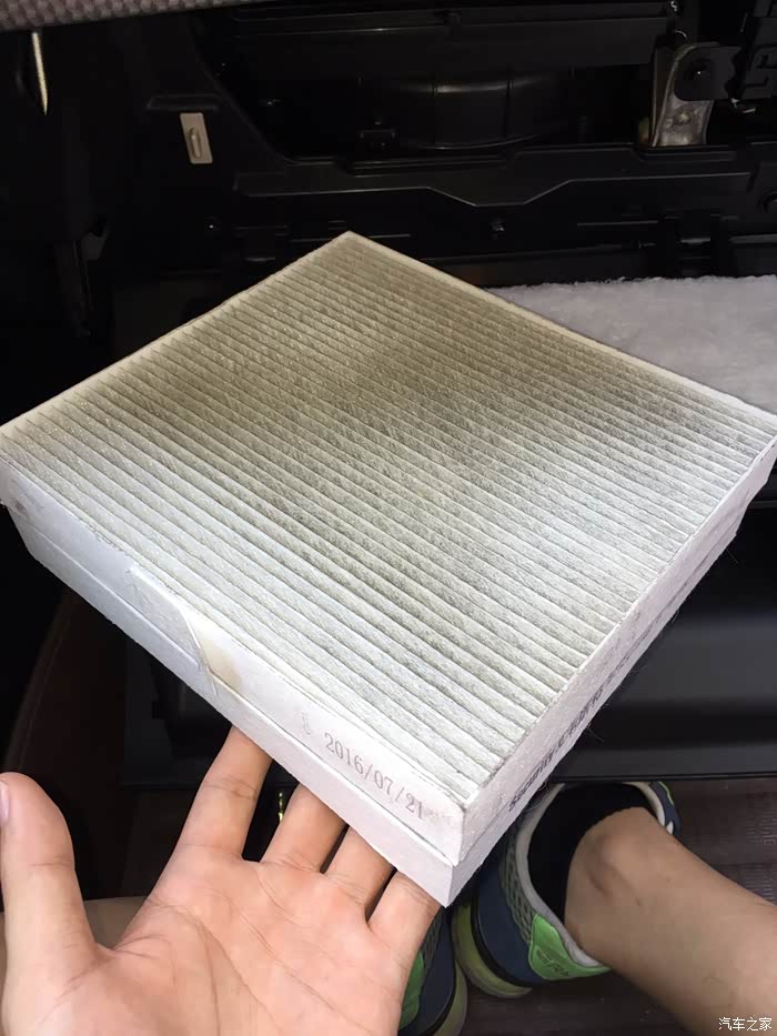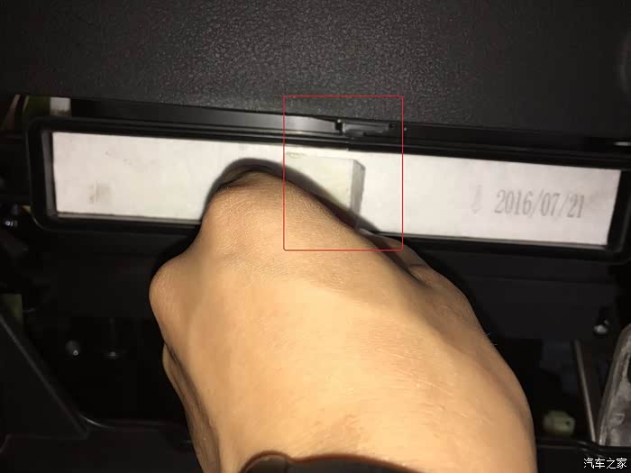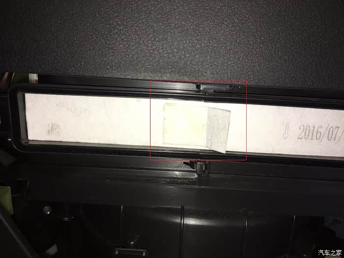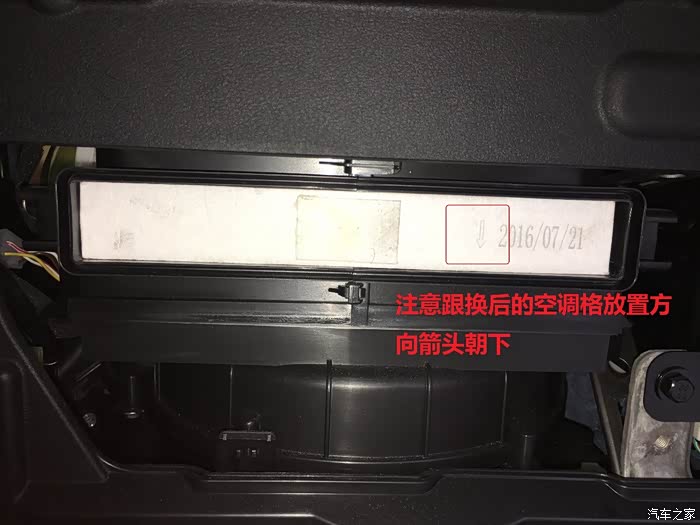然后就可以看到吉利原装空调格2016/7/21号出产的一年了,注意它的安装箭头朝下放置