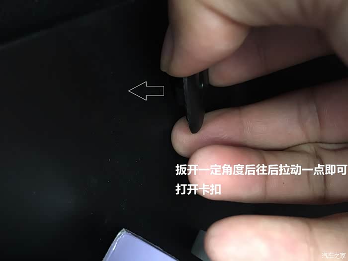 打开一定的角度后往后拉动一点即可打开卡扣