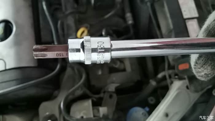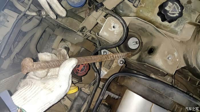 用13号套筒拆掉上面两个螺丝,用活口扳手拆下中间的橡胶螺帽