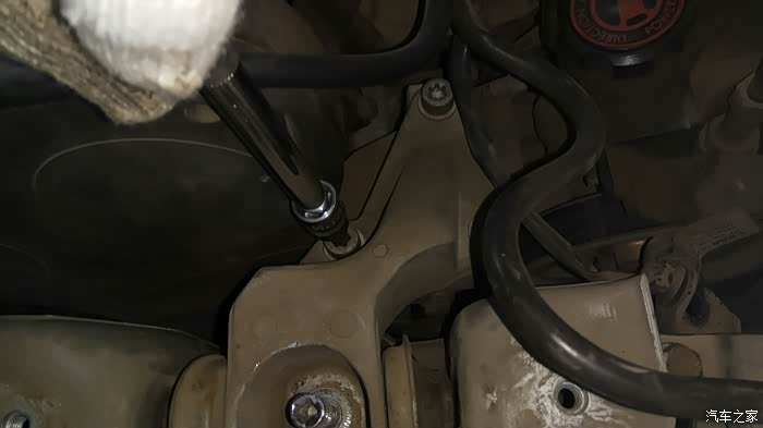先拆掉支架上的三个螺丝和支架胶顶部16的螺丝帽,可以适当的用千斤顶顶高一点