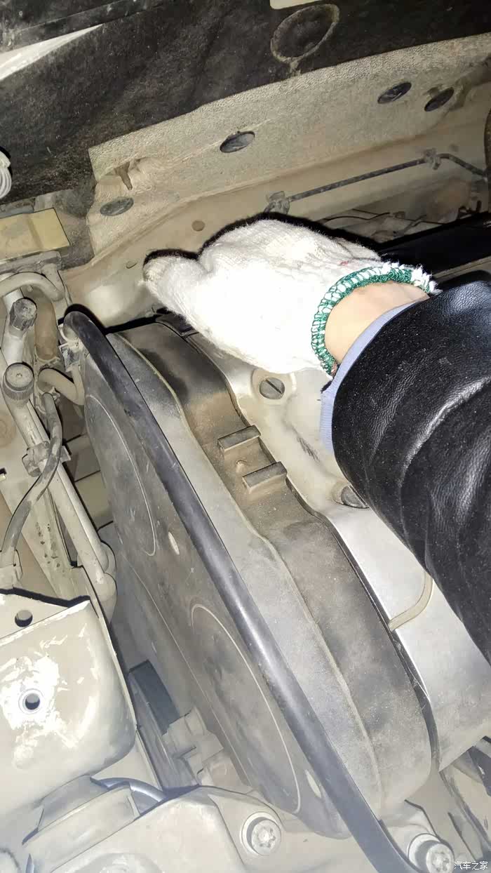 装铝支架的时候对好三个螺丝孔的稳钉,如果对不上就用千斤顶外往上顶一点,再用手扳一下发动机就能对上了