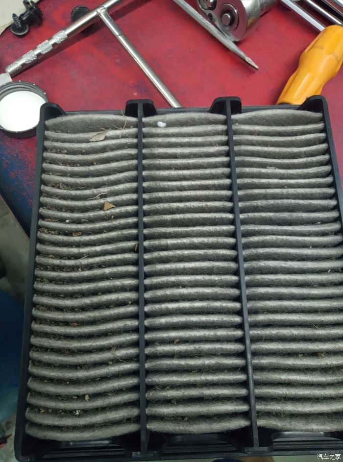 这是空气格,4w公里还没换过,上面有很多小蚊子灰尘什么的,这次果断换换换!