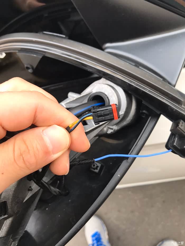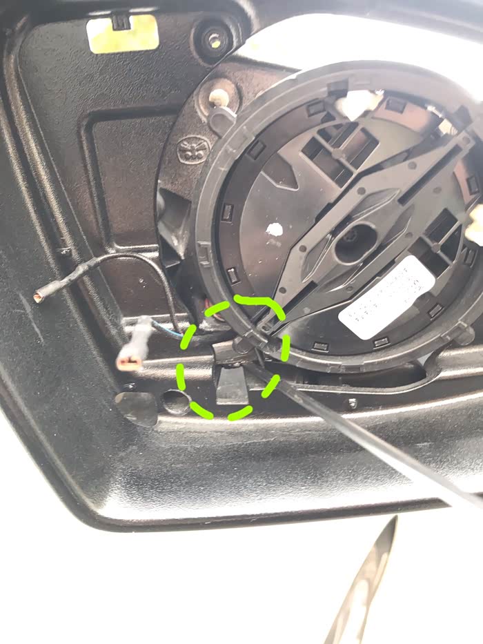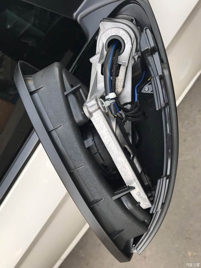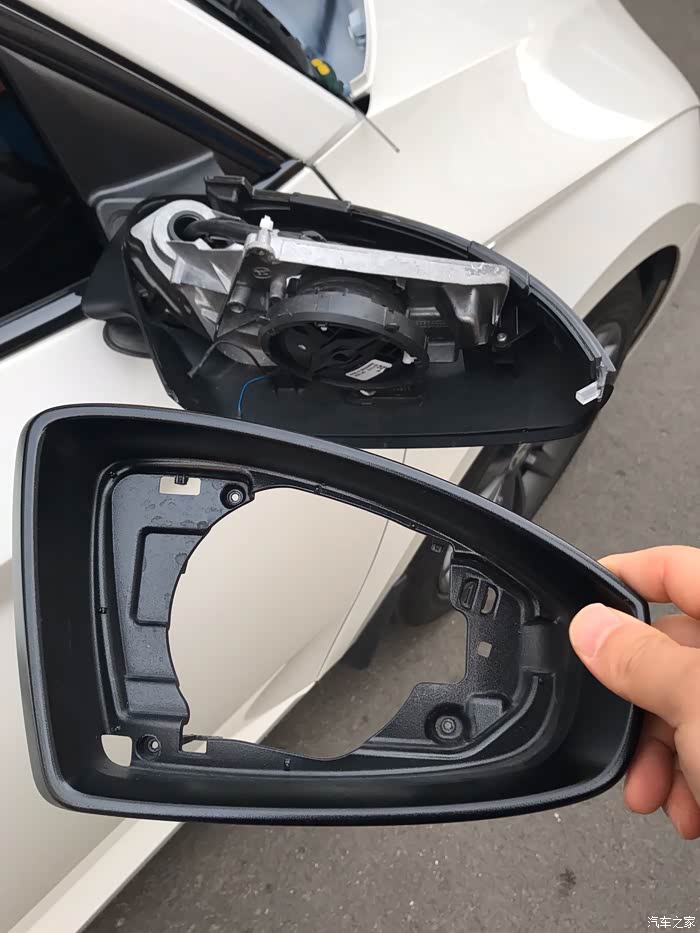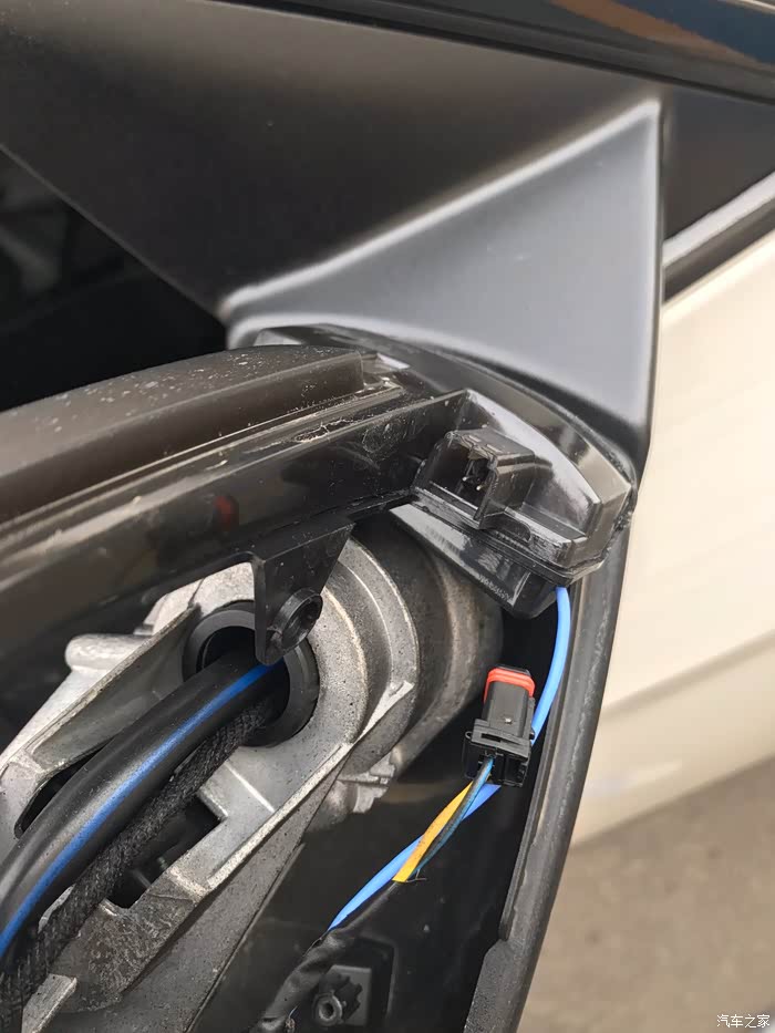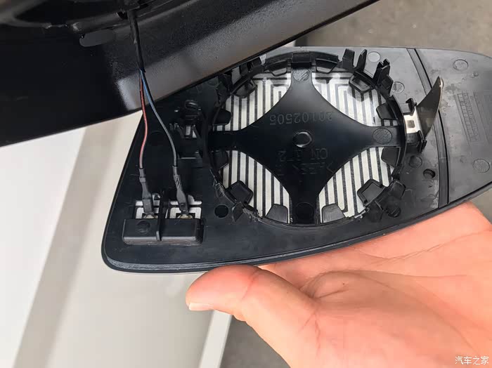 取掉的镜片,注意两根后视镜加热线!拍个照片,恢复时原位置插回!