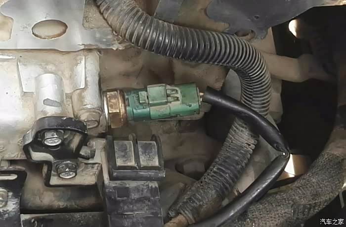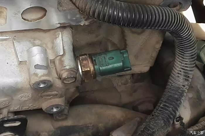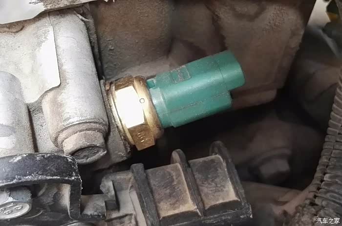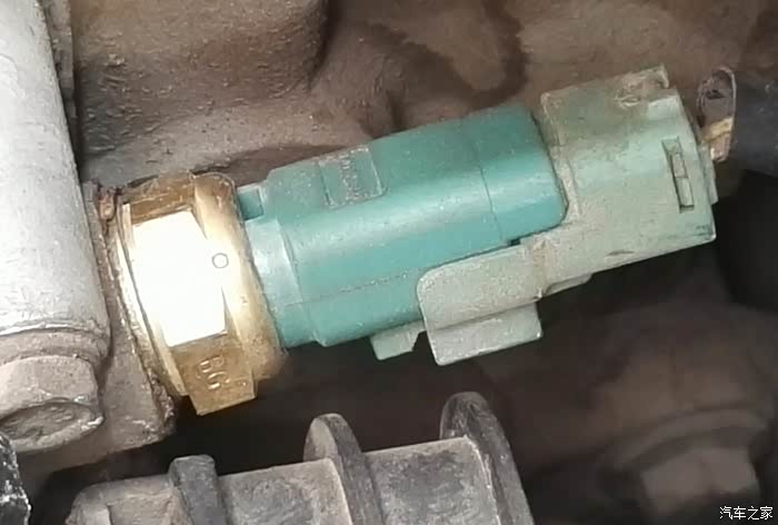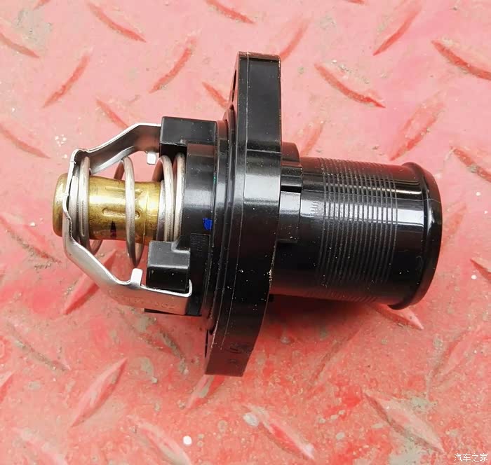 前几天到朋友那里彻底检查一下,确实有问题但不好判断,不知道是“节温器”还是“水温传感器”有问题,商量一下,先把“水温传感器”换了装个新的试试(旧的朋友没让扔),看看水温变化是否正常,跑了两天还是不稳定;最终确定是“节温器”出现问题了。