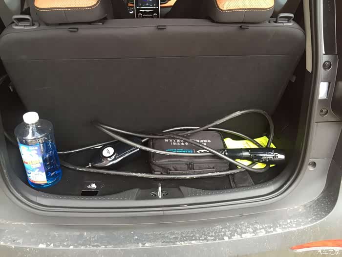 后备箱没有配垫子,现在看到的乱,下面的隔成可以放进玻璃水、还有补胎包,黄马甲都可以放进去。