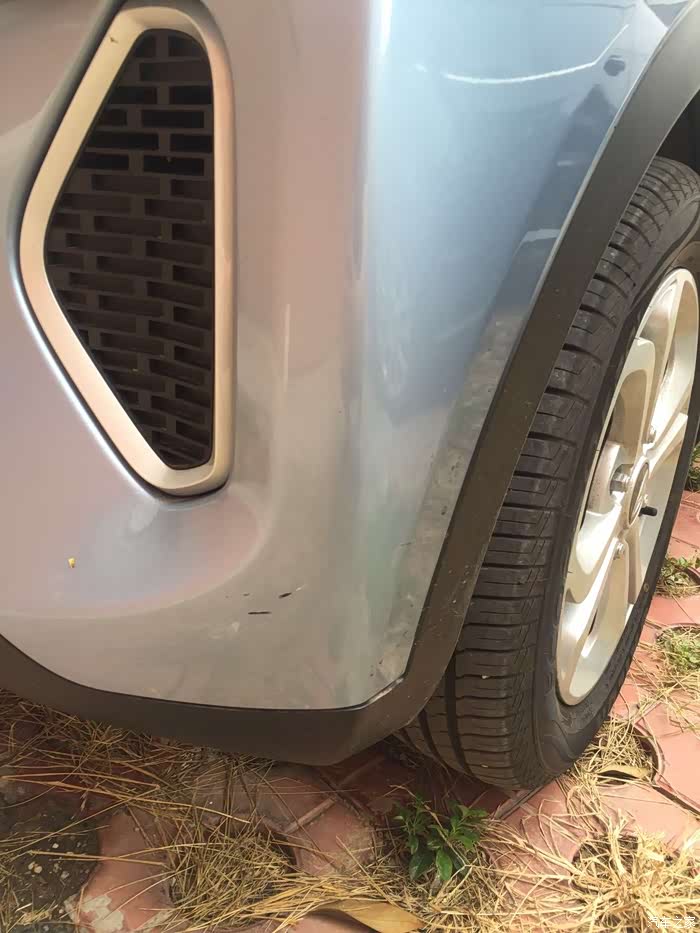 没上牌前,还有这,说起来也后怕,开车快到我妈那了,想停车,前面有两个三角桶,有点碍事,我就下来把它挪开、我记着拉手刹了,谁知到小蚂蚁竟然移动了,我就用身体顶住了他,因为3岁宝还自后排呢