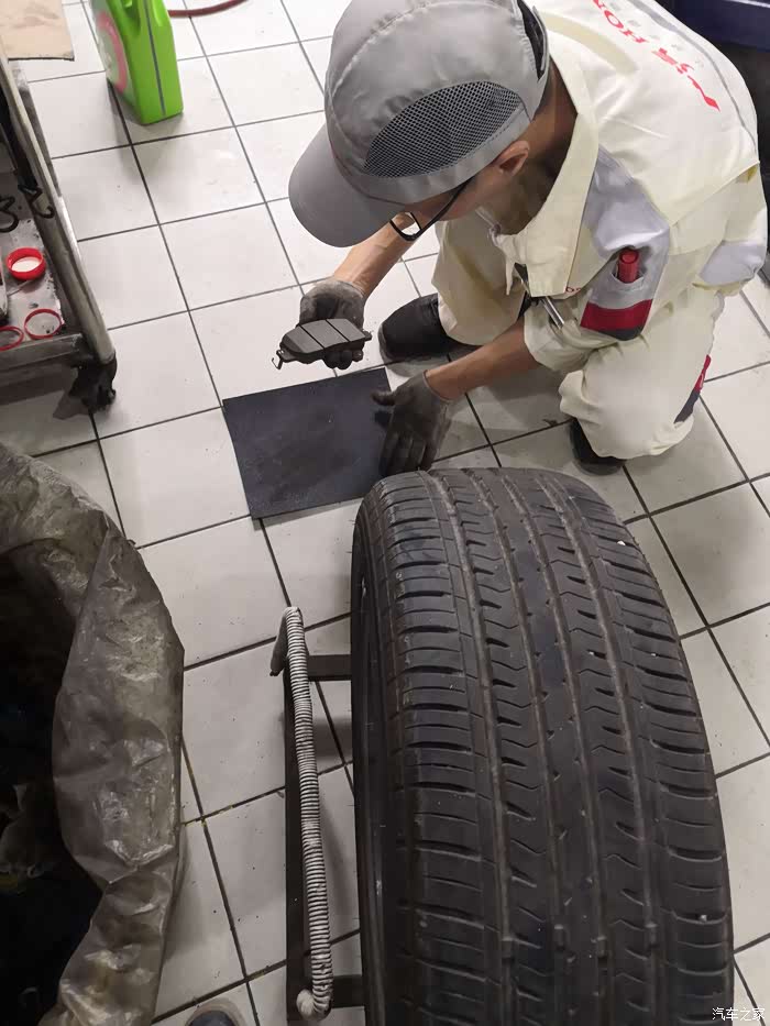 取掉轮胎,拿下刹车片清理