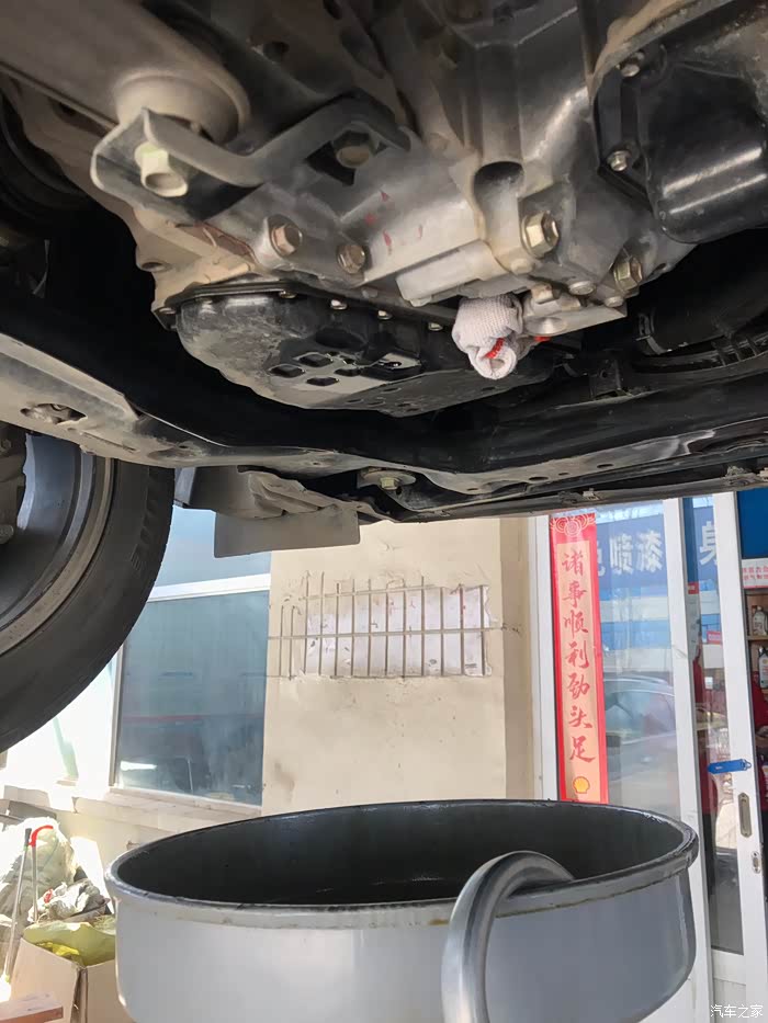 换完了,打火着车,别急让油热一热,大概三五分钟,然后升起来放掉最下面一点黑黑的油,拧紧螺丝,安上下护板,加上剩余的油,4升用完了。