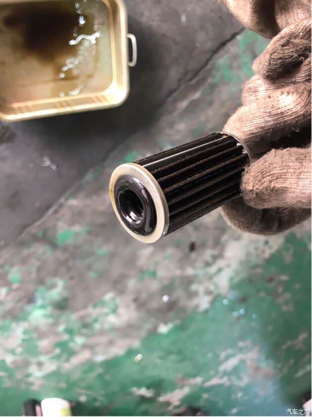 这就是变速箱外部的纸质滤芯了,很脏的,它滴下来的油里都是渣渣,箱子里的铁质滤芯就不换了,毕竟里程不多,勤换油能不开底壳就不开了,毕竟啥都是原厂状态最好。