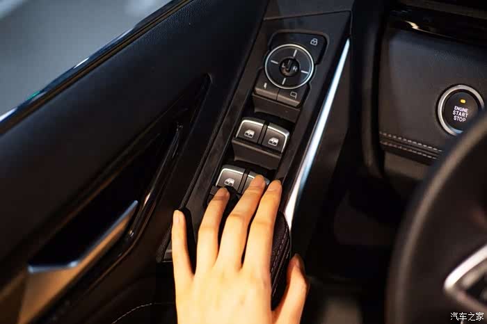 试试车窗按键,位置正好,手搭上来可以很舒服操作,值得一提,领界的一键启动在方向盘左边,相比很多在右边的布局我觉得这边更合理一些,毕竟左边闲余的空间要宽裕很多。