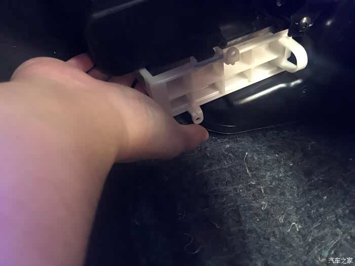 本次为了方便演示, 我将手套箱拆卸出来,以便有足够的光线及拍摄角度进行更换,实际上只需要趴下更换即可。将手套箱打开到比这个开合度稍微大一些,往上拉即可