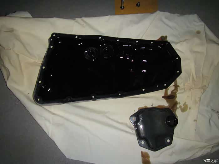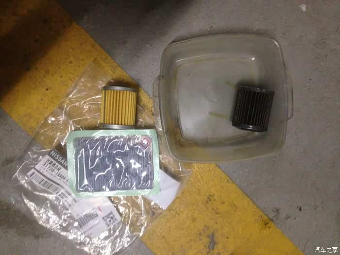 13、油盘内是费了九牛二虎之力拆下的旧CVT滤芯,其实还不太脏。外部是新买的CVT滤芯。