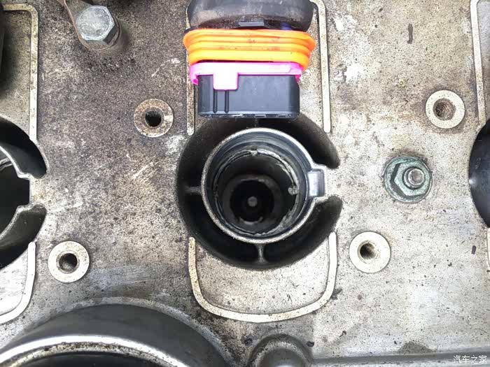 照片不是很清楚,气门缸盖孔内火花塞周围都是机油,需要清理,得想办法,后图会介绍。