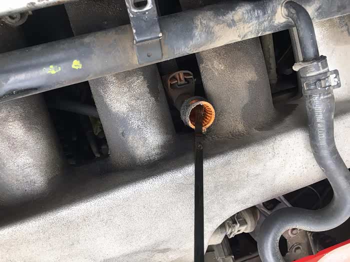 前几日开着空调正常行驶,加速时忽然感觉有动力丢失缺缸做功的感觉。但是油门踩的不是很猛就不会发生,所以仔细观察发现有问题。
