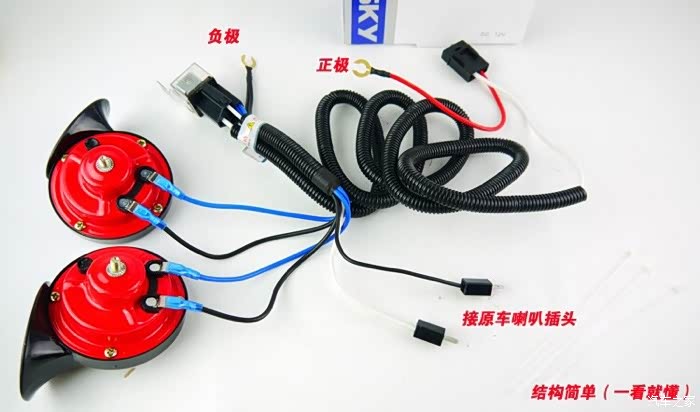 原来的喇叭其实也是蜗牛高音,单独买个蜗牛低音串上去应该也可以,就是不知道电压够不够带动两个蜗牛喇叭。这也是卖家坚持要我装继电器接电瓶的原因。