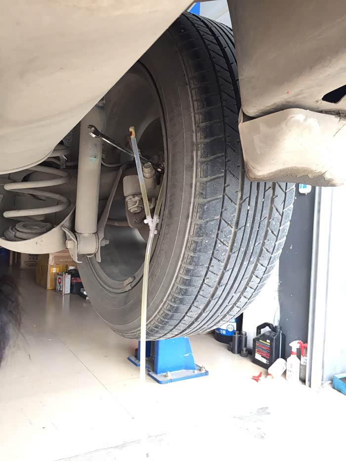 此换法最少需要两名师傅,一个负责松紧四个轮的刹车油罗丝,一个负责踩刹车和添加新刹车油。大致原理通过新油推出旧油,不要让空气窜入,从而达到更换的目的。最后拧紧所有四个轮的罗丝,刹车油添加到合适的位置,盖好盖子。