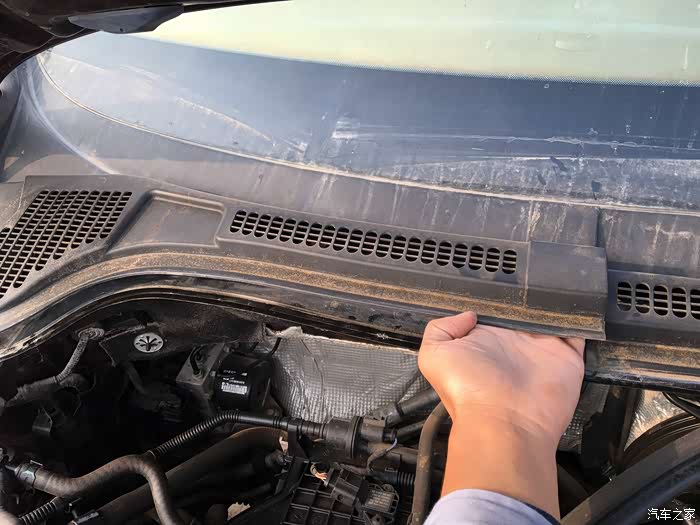 左侧雨刷会阻碍拆集水板,要先把雨刷立起来