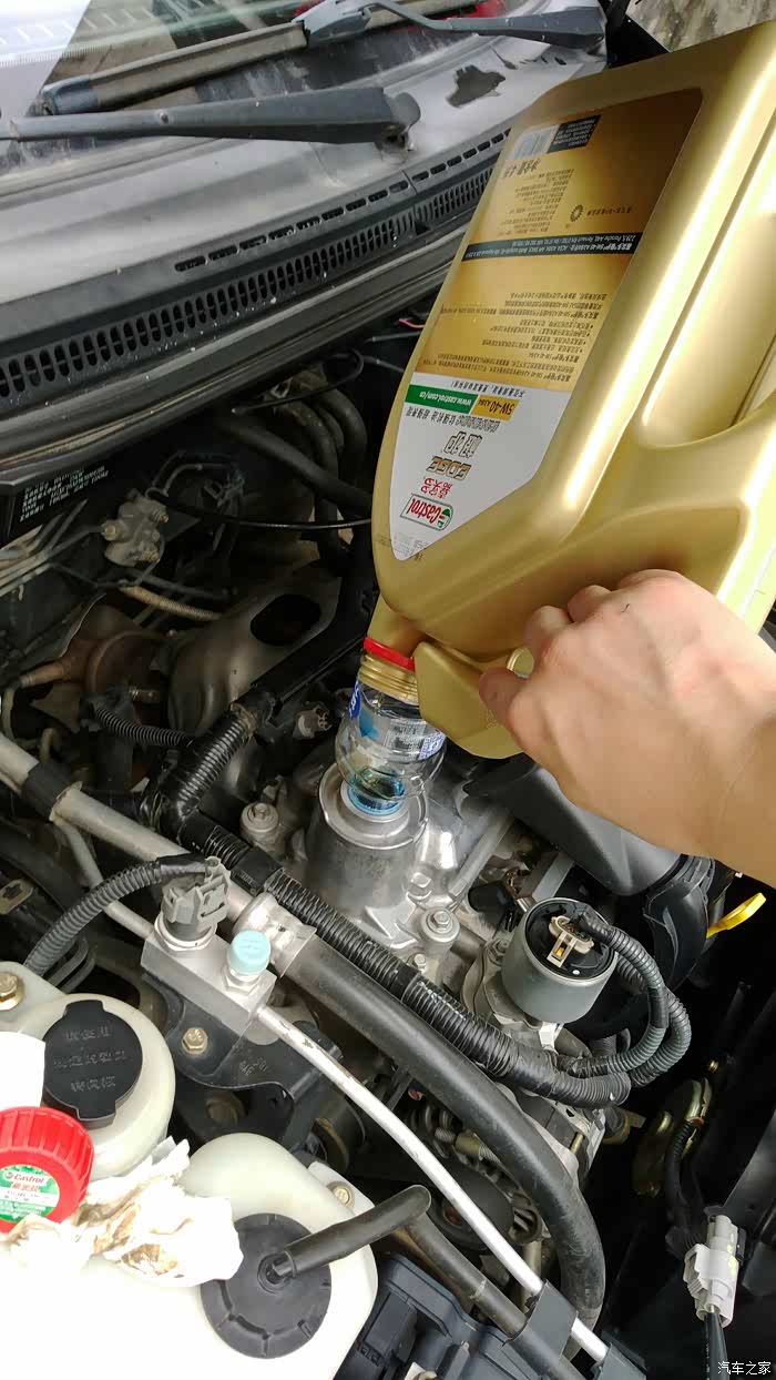用了大概一升的油倒进去冲洗了一遍,放到不会出油就锁紧放油螺丝