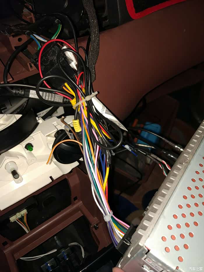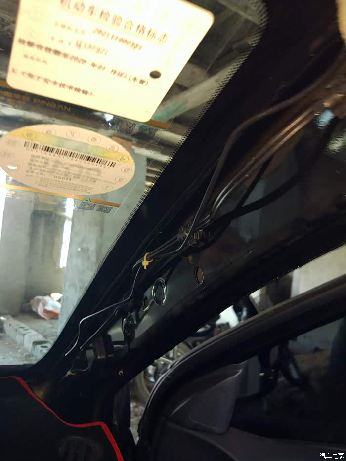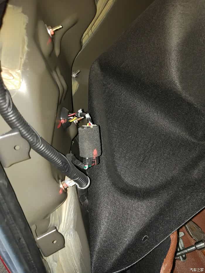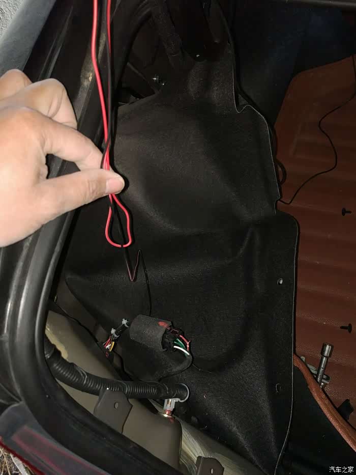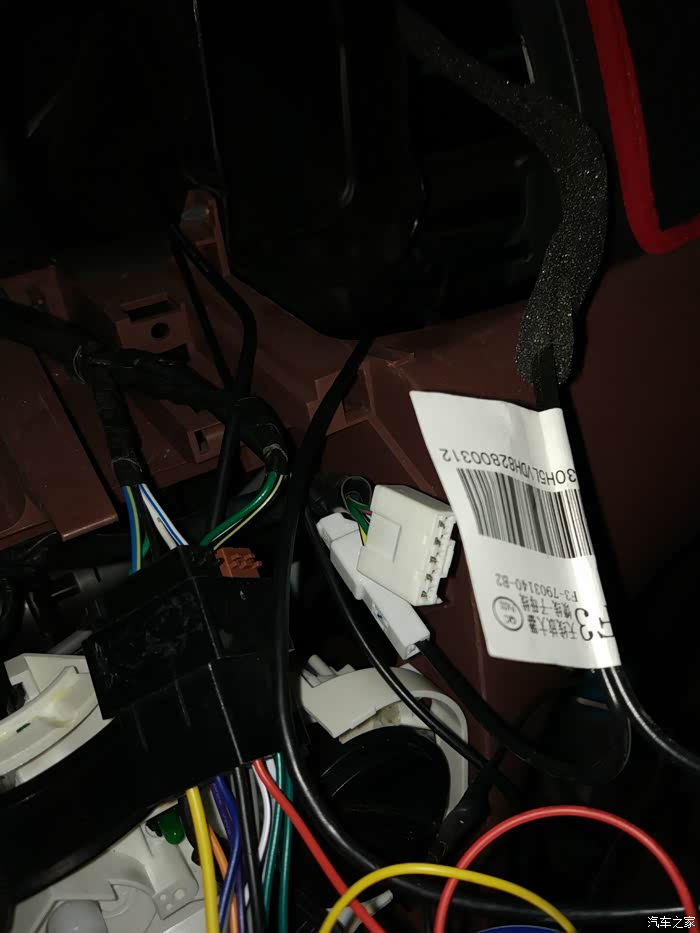 之后是倒车影像走线。接线方法都有说明,也很简单。我把后座拆下来了,其实不拆也行。还有请大家忽视我车里埋汰的地方,没来得及收拾