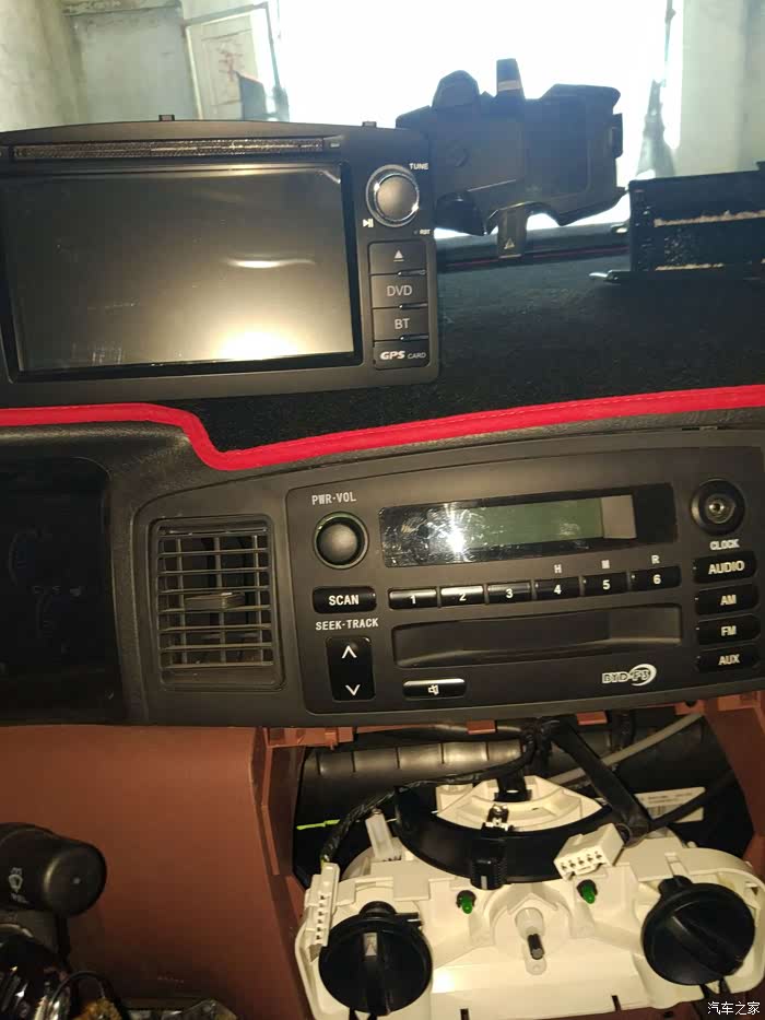 拆下盖板的样子,然后拆原车收音机。注意拆的时候不要害怕,但是用力也不能过猛。