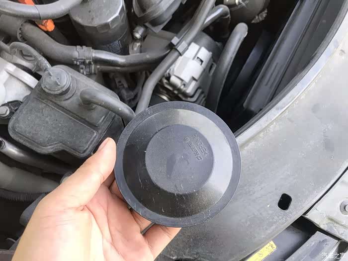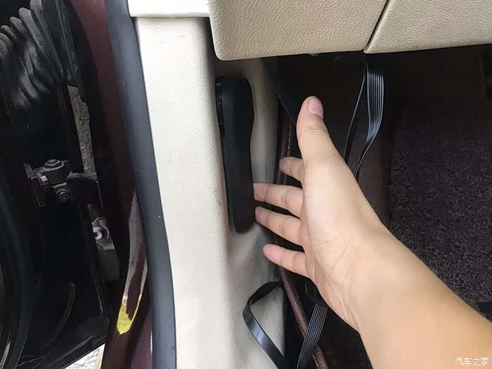 然后在主驾驶的这个位置有打开引擎盖的扳手,打开车的引擎盖
