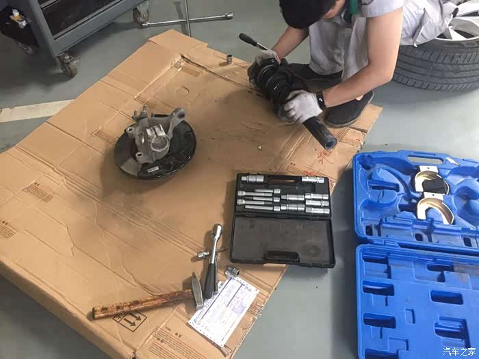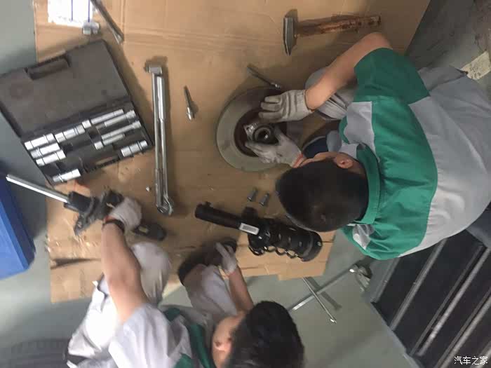开始卸车轮啦,师傅说更换减震比较麻烦一些