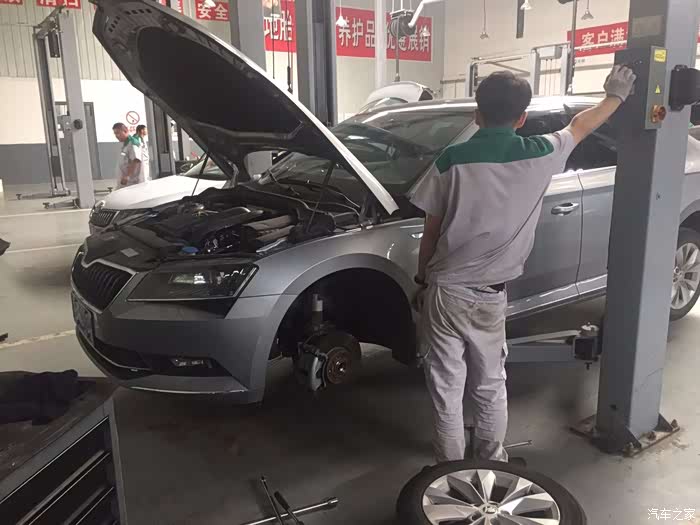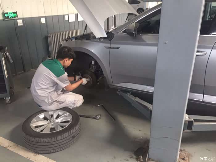 一个月前原地打方向发现左前减震有轻微异响,开始没太在意,因为响声不是很大,不仔细听根本听不出来,但是出于安全考虑,再一个也在质保期,还是去了趟4s店,经维修师傅检查还是真是有问题,登记、备料、等发货...大概一个星期左右就到了,售后打电话后直接奔过去,周一车不算是很多,但是维修厂房忙的比较热闹