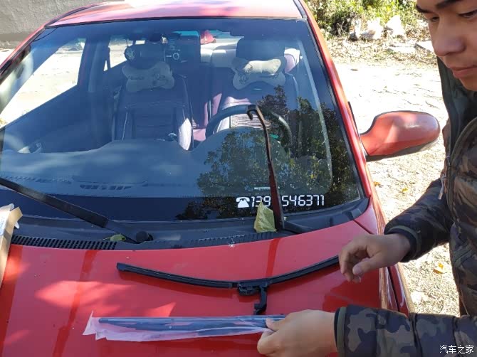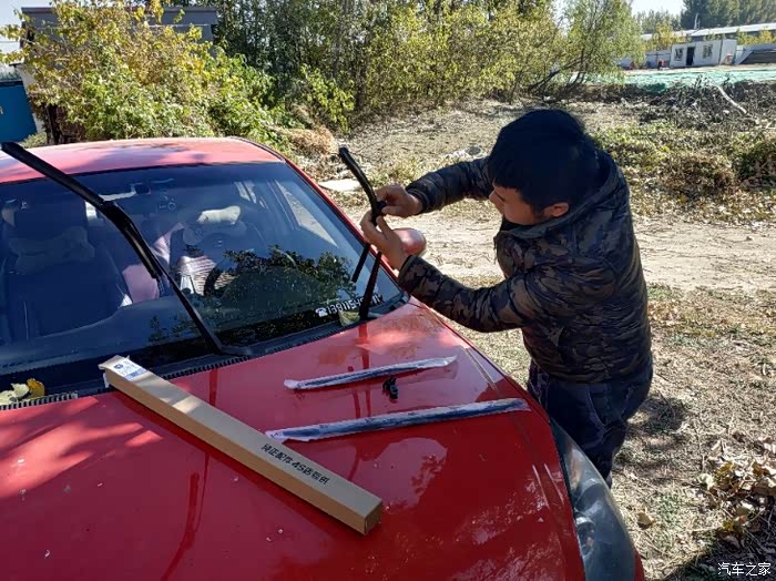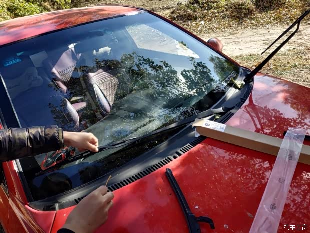 玻璃太脏用抹布擦擦干净多了,把雨刷立起来准备开干