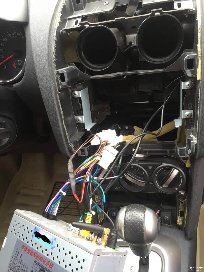 双跳的接头拔掉,取出面板。用十字螺丝刀拆掉CD机旁边的4个螺丝,CD机就能抽出来了。4个十字螺丝还有用,用来固定导航 。