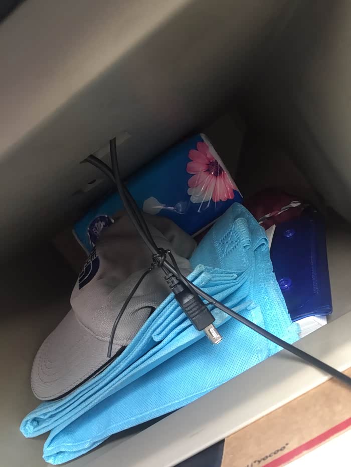 手套箱里引出的USB,旁边的一根线就是我的行车记录仪的电源线。