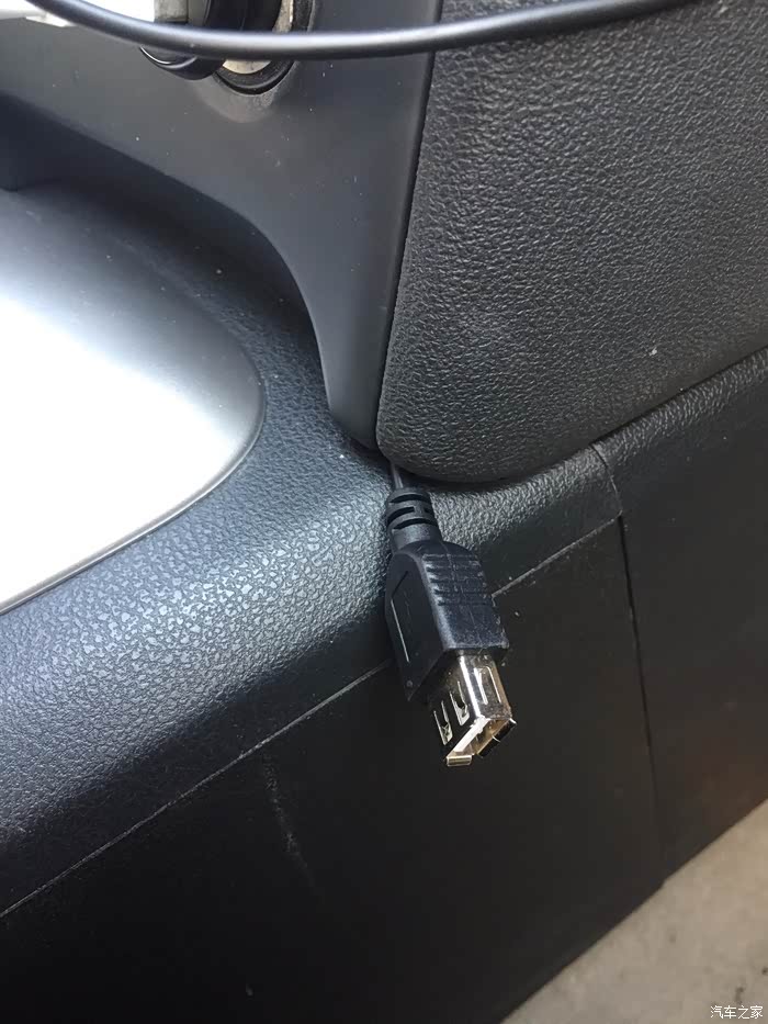 很清爽的接口,后面引出的黑线是2个USB口。一个用来给行车记录仪供电,省得再接点烟器了,另一个用来接U盘。