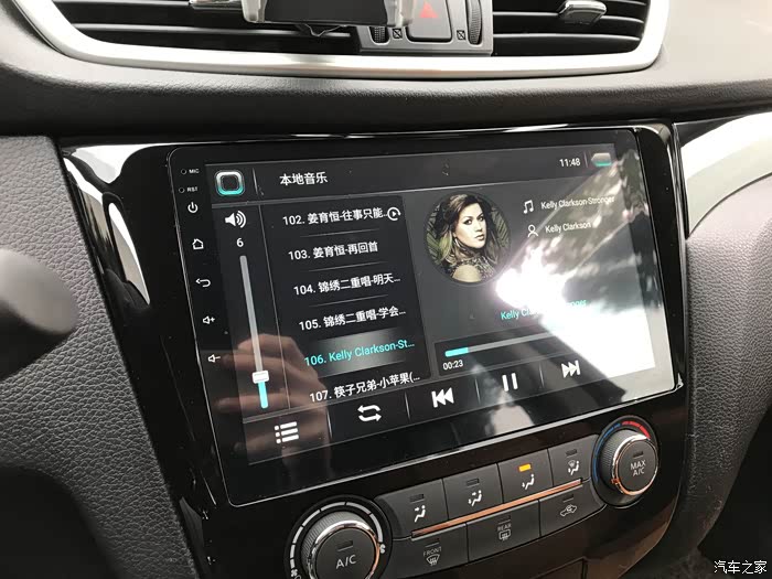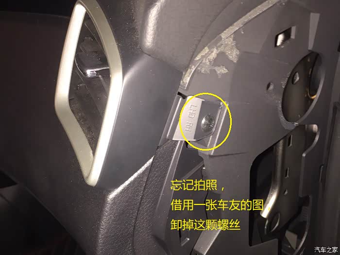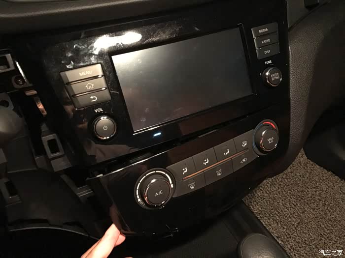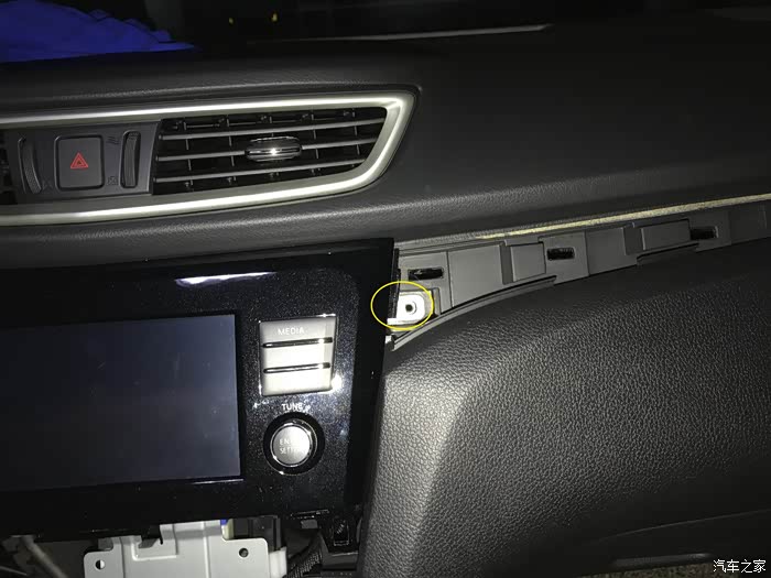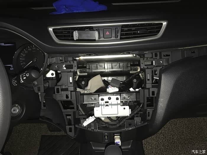 这步是整个过程最困难的,如图先要拉出空调开关面板。我走了点弯路,图片也是后补的,左侧的饰板必须在空调面板拉出后才能拆下。这里很不好使力,又不敢太大力,怕硬拉坏卡子或塑板。