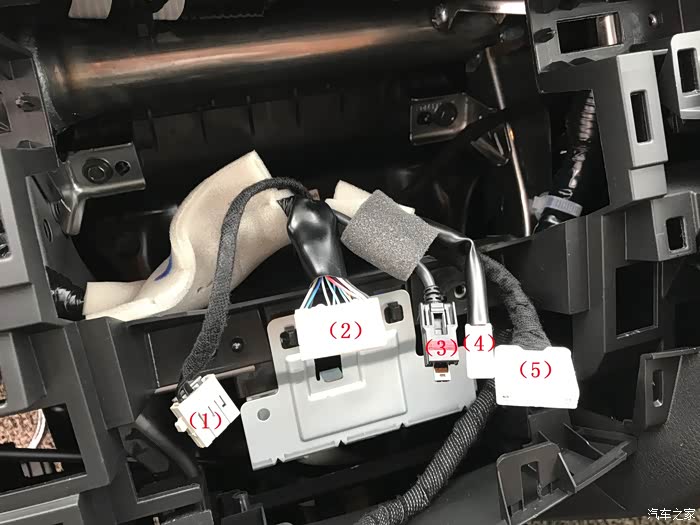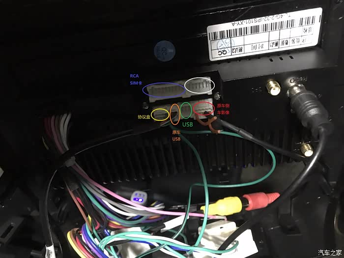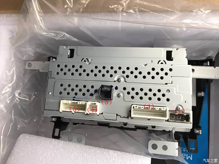 上新导航。新导航忘记拍背部整体照片了。后面线束插座如图示。线束与原车线束对接很容易,都不是一个大小的,怎么都不会插错。