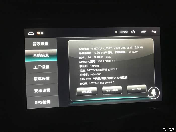 升级导航的主要目的,是改善一下音响效果。在某宝找了很久,基本也就是商家标称的7850参数最好。手头正好有电信4G套餐卡,所以导航免不了要支持4G,SIM卡是延长线放到手套箱里,方便换卡。此款导航支持原车线束直接对插,支持原车方向盘控制,支持原车倒车影像。其他配置4核A53,2G运存,wifi网络。