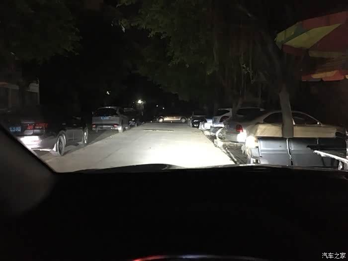 夜间效果,比原来的卤素灯亮太多了,灯光铺出去的范围宽了很多,原来照不到的路边草丛现在一片明亮。