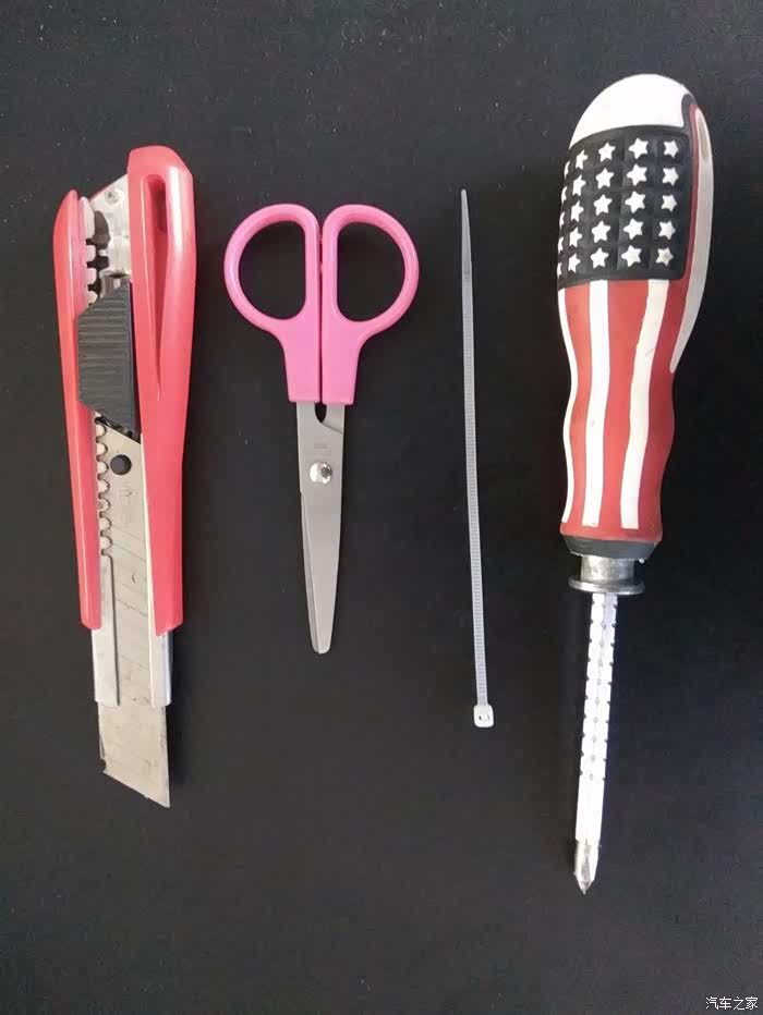 工具!1 待更换的防尘罩皮套(推荐:淘宝创亿汽配城 41元包邮)2 改锥(螺丝刀)、美工刀、剪刀、勒死狗(尼龙扎带)、内六角扳手、尖嘴钳子