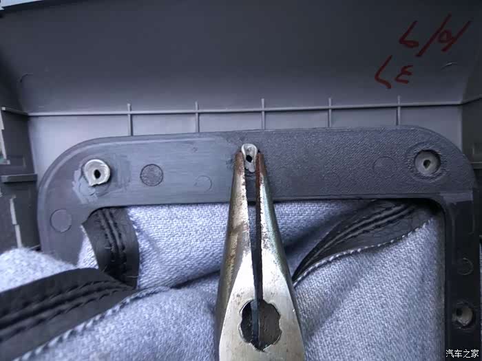 塑料压板回装的时候,要费一些力气,要先回装大的固定柱,再回装小的。因为拆卸的时候进行了一些处理,所以回装的时候,大部分轻轻一按就回位了,个别的需要用小刀撬一下,或者用钳子捏一下。