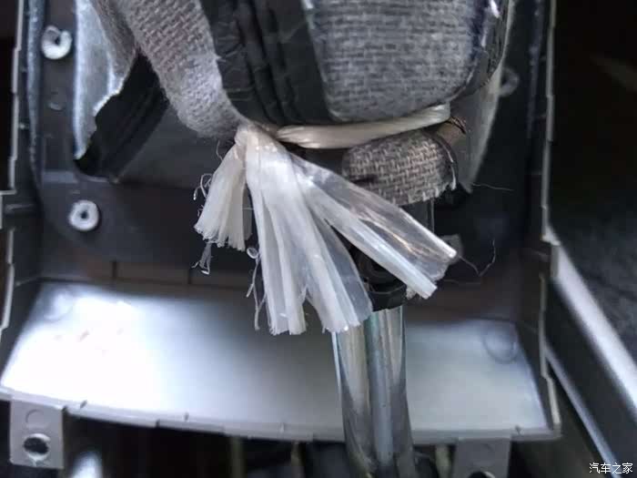 大多数车辆这个位置都是尼龙扎带,长安公司有点太小家子气了,居然就绑了一根玻璃丝绳。国产车之所以价格低,往往是在这样的细节上节省了,其实这样反倒给车主带来太多的麻烦。