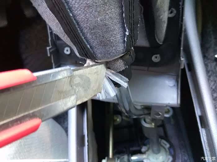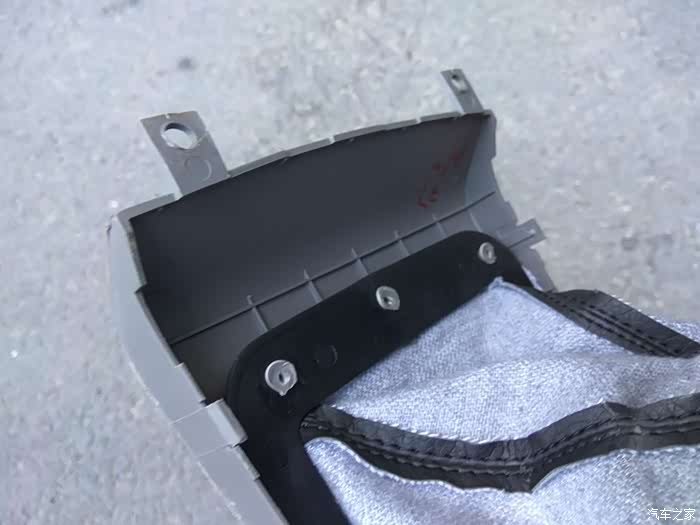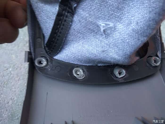 防尘罩与盖板的连接,是直接将盖板上的固定柱热熔了之后,压扁成型,实际上应该用垫片加在这个黑色的固定板上,用螺丝固定上,这样,便于车主以后自己更换防尘罩,而长安厂看似简单的一个操作,给广大车主造成了很大的麻烦。其实很多车主没有动手能力,或者没有应手的工具,长安公司与其省这点钱,莫不如直接安装个真皮的,给大家省去麻烦,也给自己换个好名声。