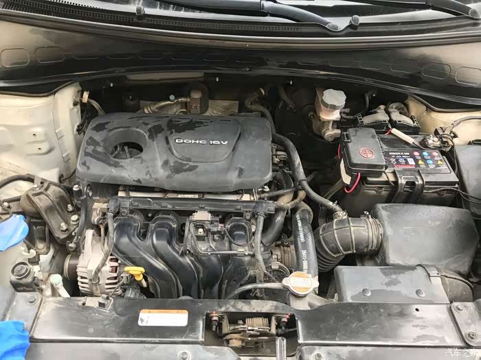 打开发动机舱,有点脏