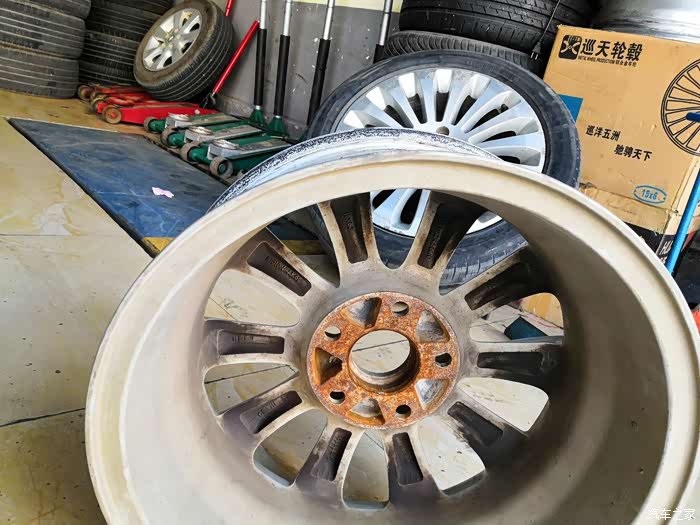 这次换胎因为是上次保养的时候发现轮胎严重受伤,又发现了左前轮轮毂变形,估计是上次过井盖的时候撞击变形的,所以想想就在附近的汽配城更换了一个轮胎和修复轮毂,在网上订购帮安装的店面没有轮毂修复的,所以一个是在实体店安装修复,一个在其他地方安装的轮胎,虽然比较啰嗦·但是还是能省几十块钱的。