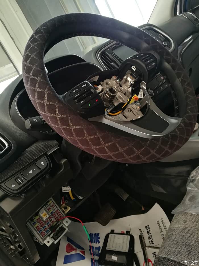 转向管柱异响是看到群里有这么样问题的车友反映,自己也试了一下,就是冷车状态转方向盘有卡卡的响声,于是就到4S检查。检查结果自然是更换啦,4S给问题录像,发给厂方索赔,过了一周多的样子,通知我去更换。到了店里,自然要把新管柱掏出来啦