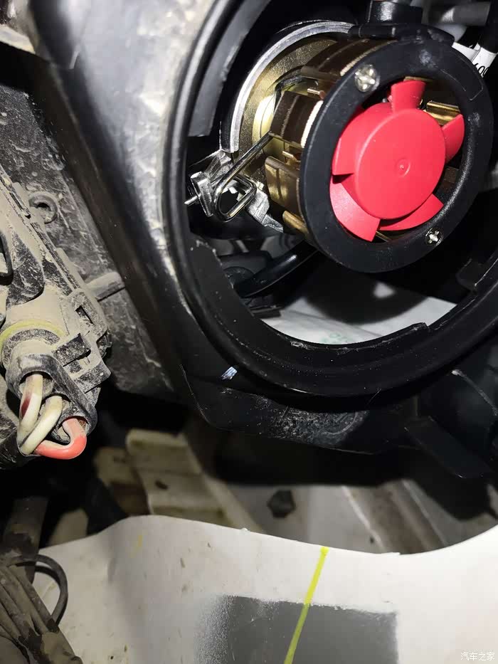 开始安装,安装费时候我没怎么拍照,见谅,安装费80,心烦。很简单的,和我原来装一体的氙气灯一样,接两根线就可以了。但是我还傻傻的给人家装,