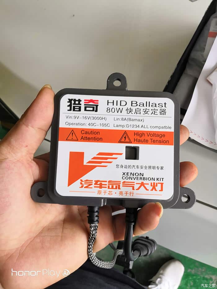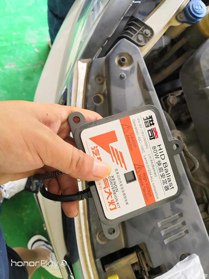 网上买的氙气灯,避免广告,我就不说了在哪买的了,外装的安定器,后面悲催的没有合适的位置装,也是我退掉的一个原因,装哪里都不稳,