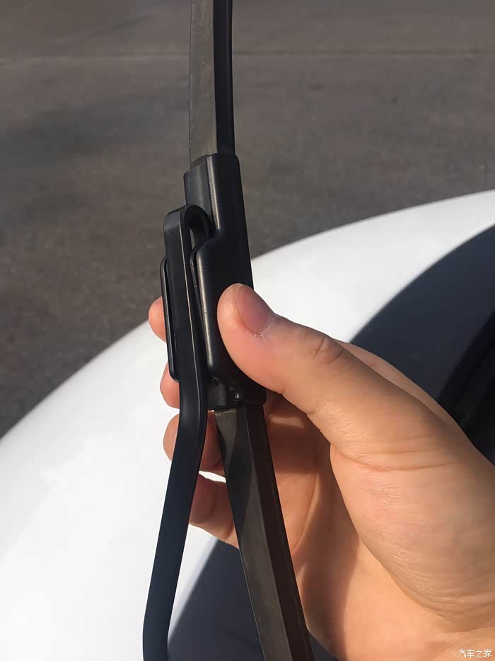 按住卡扣同时雨刮器往下拉,注意扶住,不然打下去玻璃会打碎