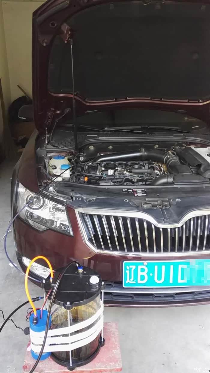 需要注意的是,EA888的机油尺的管子里,貌似有一个卡扣,需稍微的用力给他顶开(老司机你懂得),才能进入到最底部,到达底下后,吸油泵会处于真空状态,就能吸了。抽的过程很顺利,期间停顿了2次,让机油更多的向底部流动。
